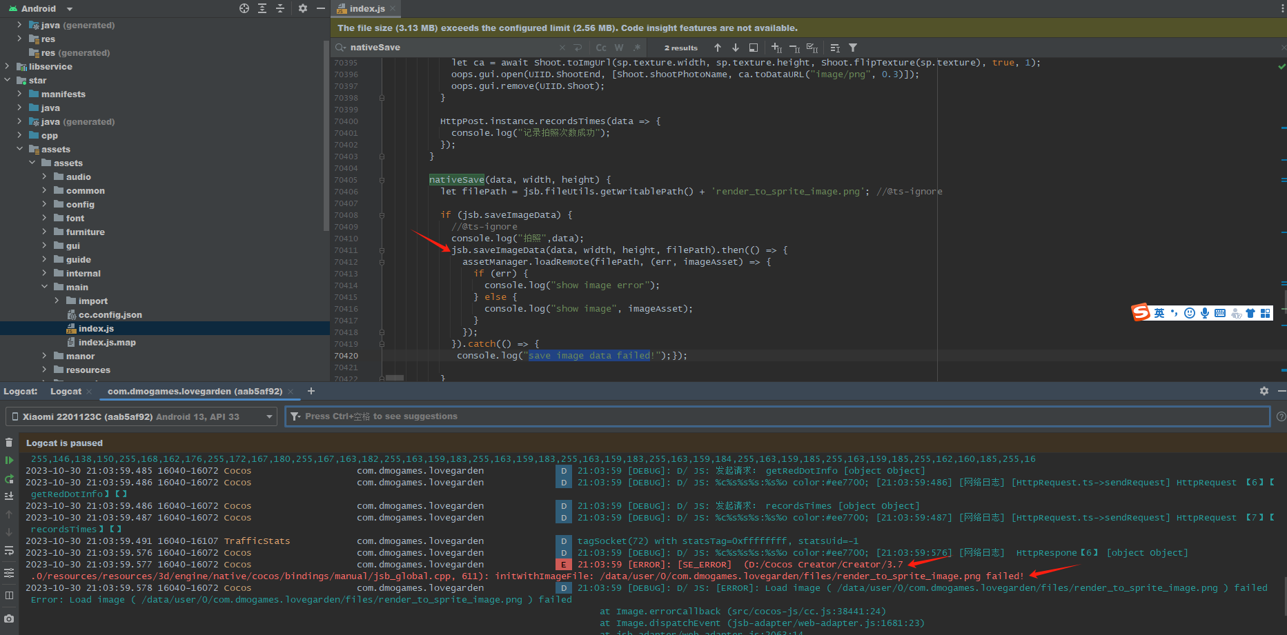 已经解决了,原因是我这个图片还没保存成功另一个地方就去加载就会包这个错。还有这个图片加载渲染出来的图片是倒着的,把sprite的type改成九宫格模式图片就渲染正常了。