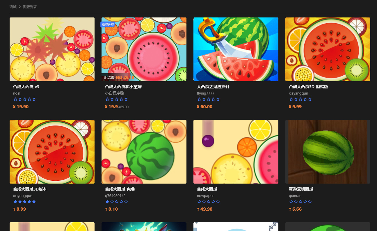9毛钱买了一个大西瓜的源码,主要是看中美术资源,魔改一下累计也赚了几百了吧。。。