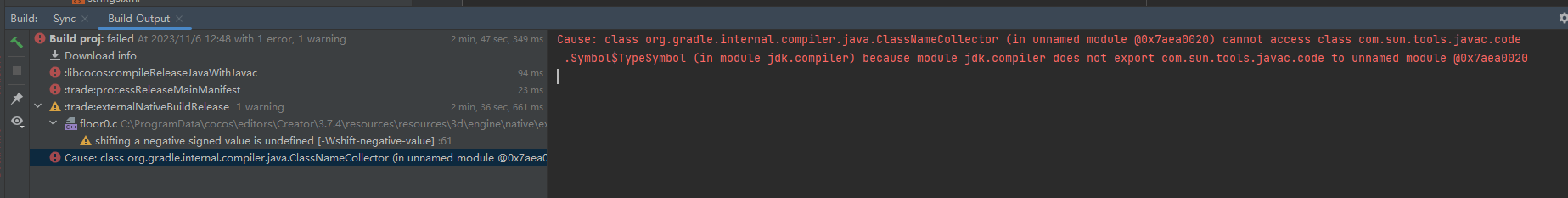 Caused by: java.lang.IllegalAccessError: class org.gradle.internal.compiler.java.ClassNameCollector (in unnamed module @0x7aea0020) cannot access class com.sun.tools.javac.code.Symbol$TypeSymbol (in module jdk.compiler) because module jdk.compiler does not export com.sun.tools.javac.code to unnamed module @0x7aea0020