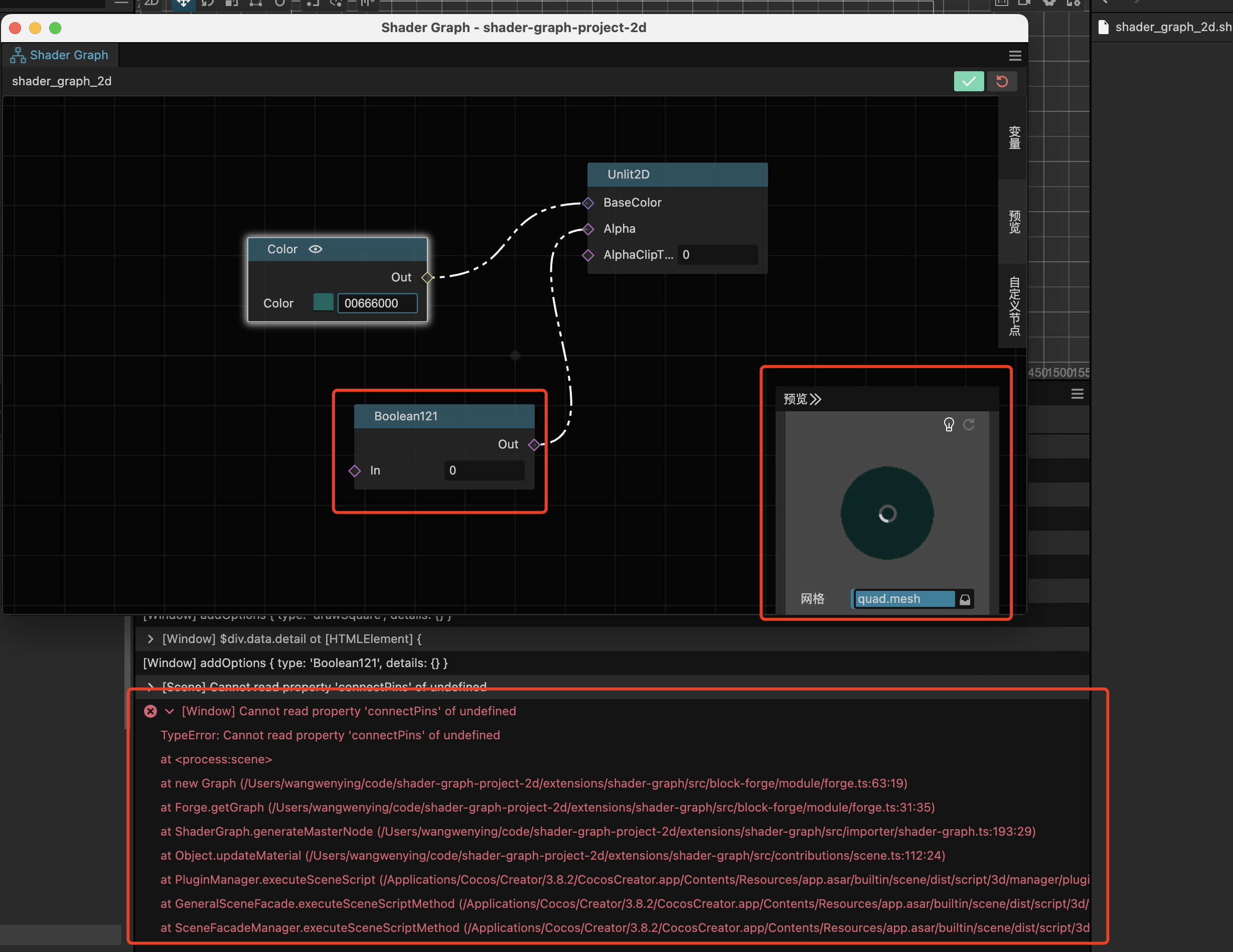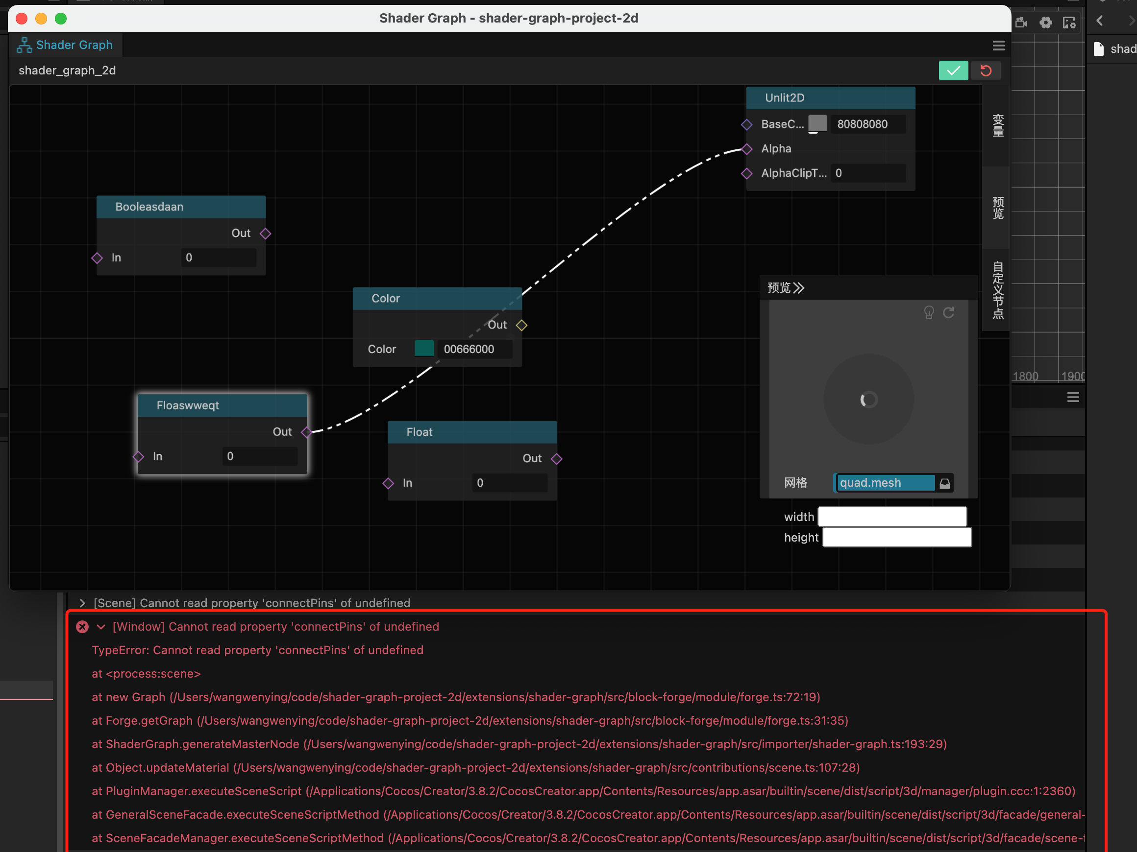 拓展自定义节点时,通过input_basic新增节点代码,并执行generate.js脚本,生成了节点的ts文件,并更新了import;新节点的block、inputlinepin,outputlinepin都创建成功的,但是一连线就报错connectPin undefined,断点排查了上下文都是有数据的,重启编辑器就没报错了,这个麻烦看看呢