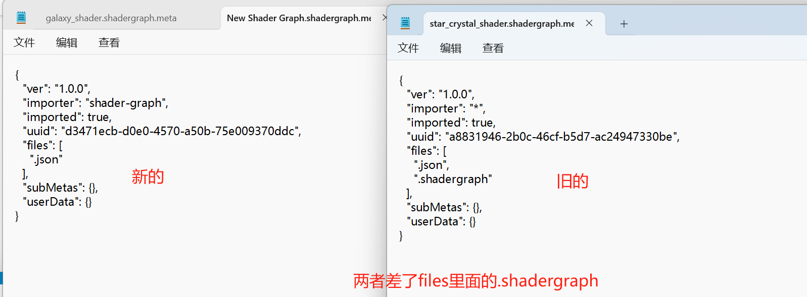 其中New Shader Graph是新创建的没问题,galaxy_shader是我改了.mata文件之后识别出来的