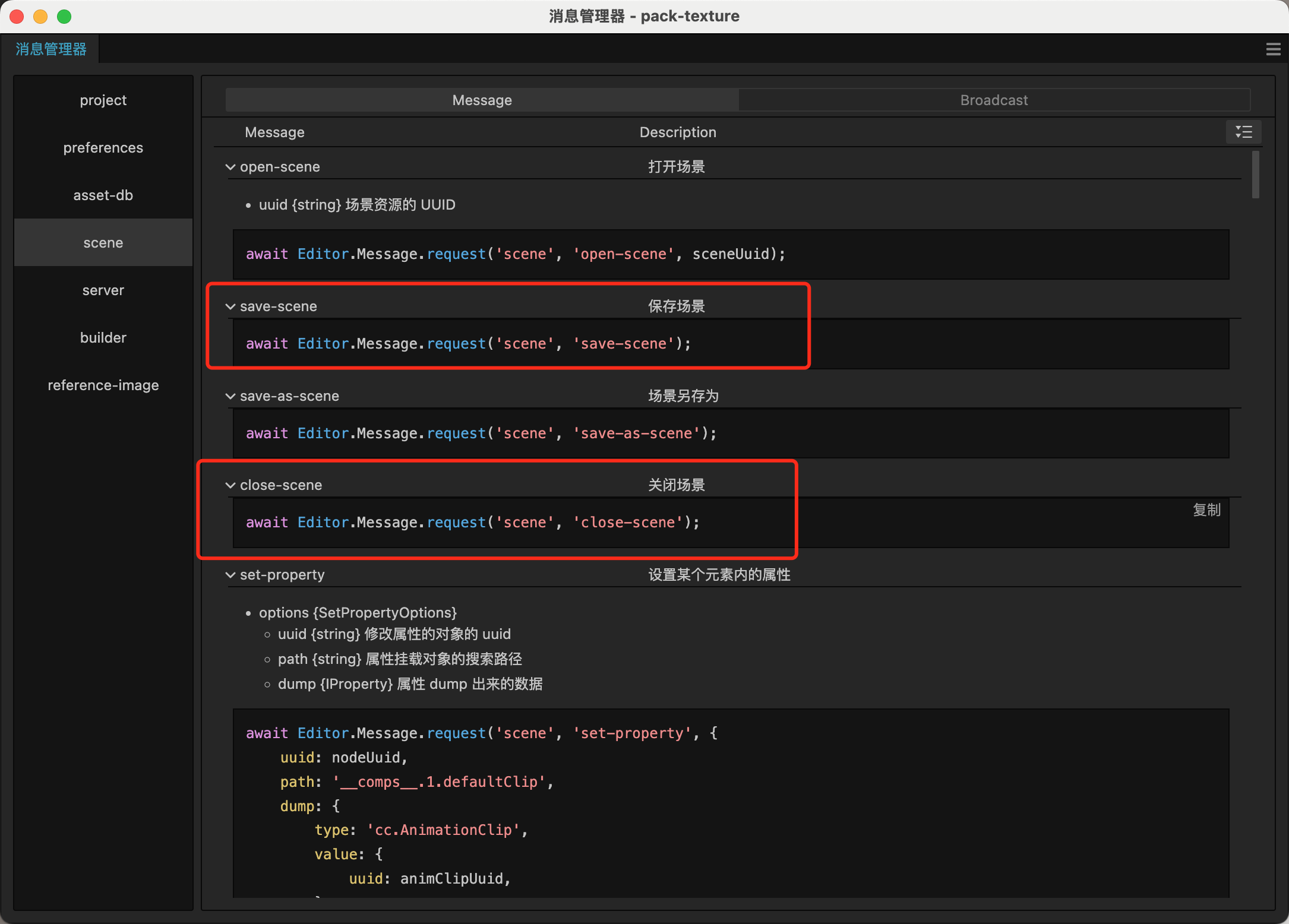 await Editor.Message.request(‘scene’, ‘close-scene’, prefabUuid);