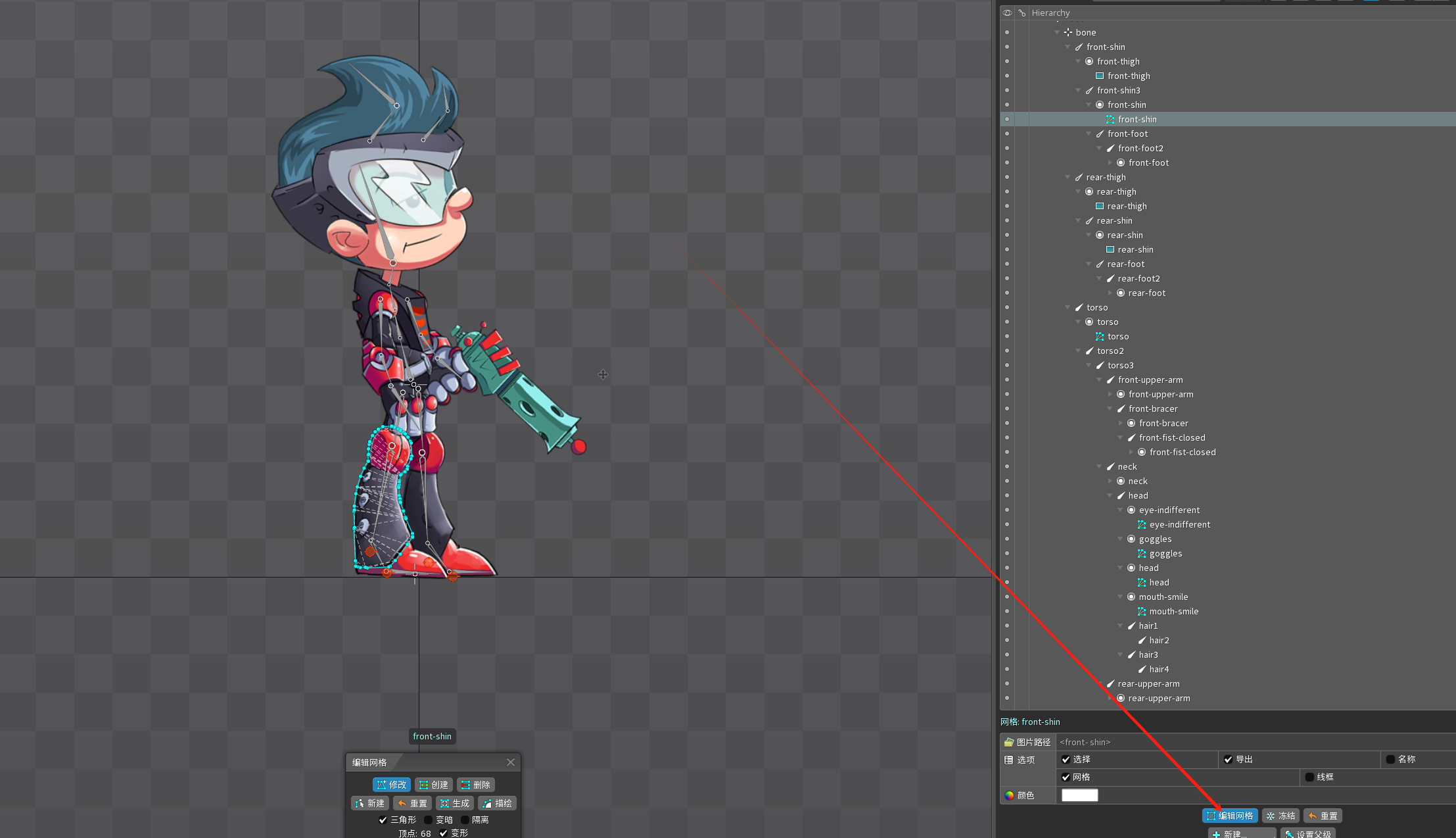 骨架做好后,我们就要编辑图片的网格,这样图片才能实现任意变形。