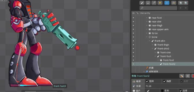 这样子双足就不会往下倾斜了。做好前期准备后,我们就来简单做一个动画。