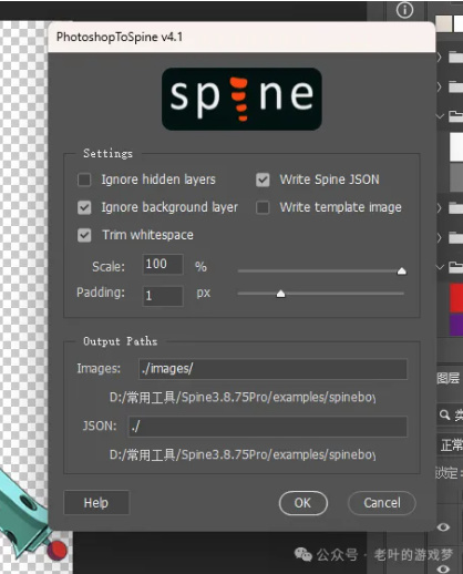通过导入数据的形式把图片,导入进来,这样spine就会完整复刻psd的格式
