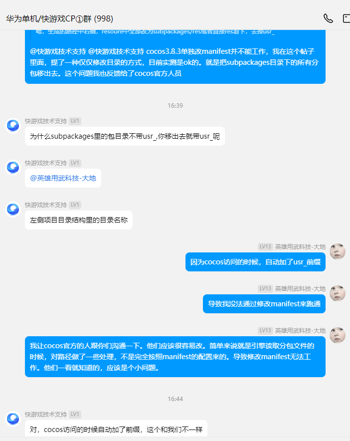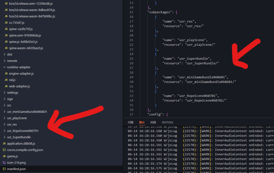 为什么无效?我根据报错信息梳理,大概是因为cocos读取文件的时候,没有加subpackages路径。同时又有一些usr_前缀的处理。这些处理,导致没办法完全通过修改manifest来完成。