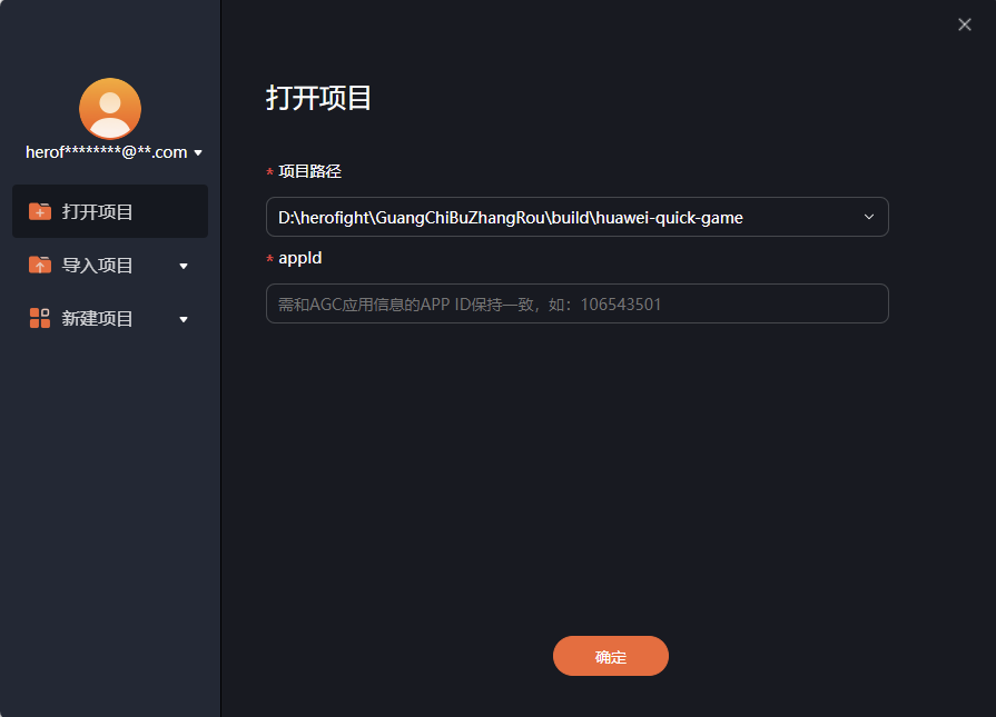 发现构建面板Name必须输入英文,才可以在华为快游戏调试工具那里点击运行启动