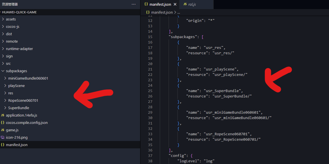 解压了rpk里面确实是对的,但是编译前的那个目录,就没法用华为小游戏工具,调试了哦