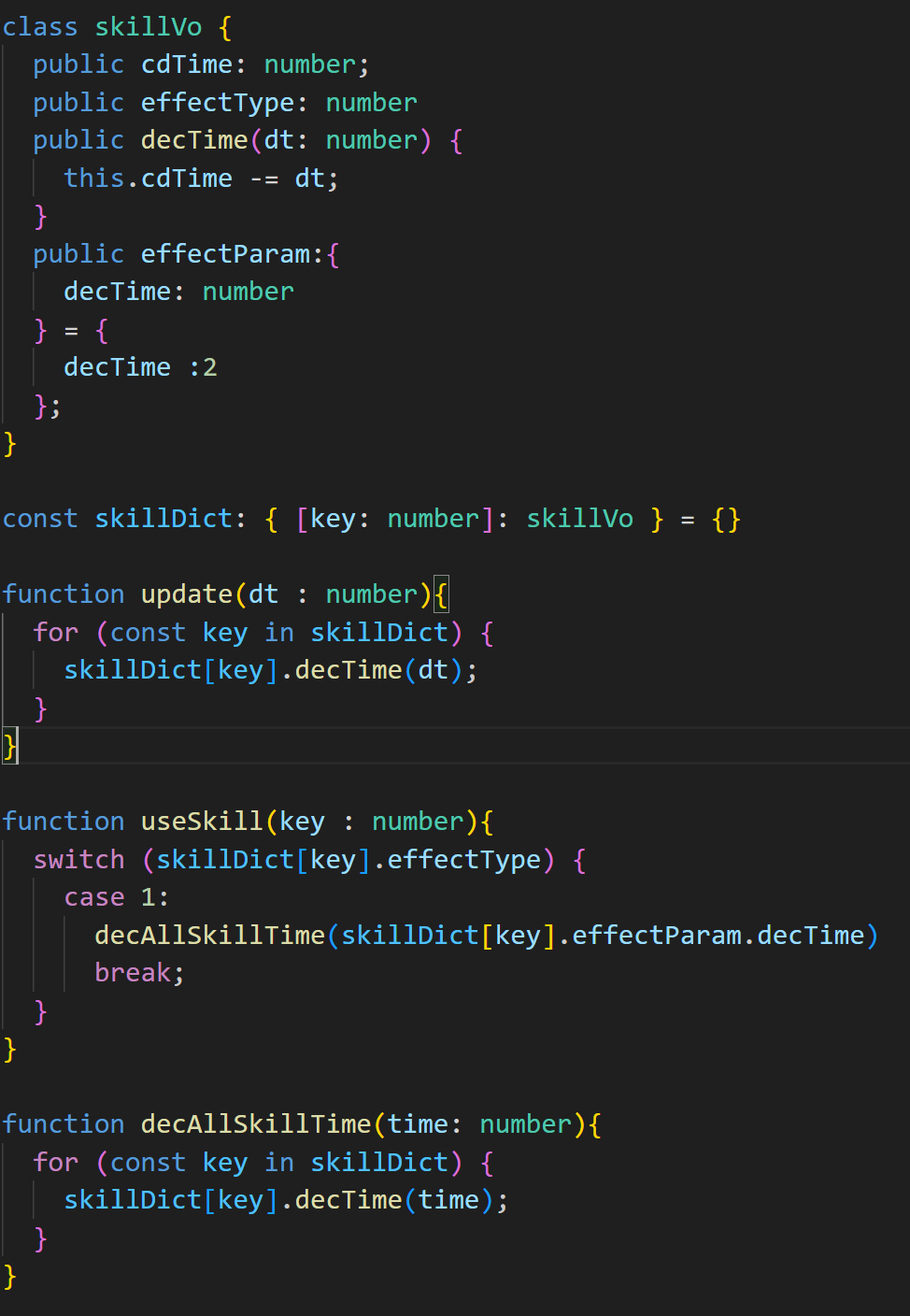 应该只用一个计时器每隔100ms调用一次封装的checkCD 遍历冷却中技能数据 更新剩余冷却时间
