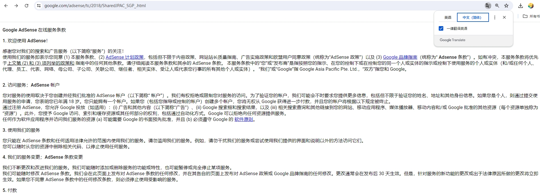 这里附上电子版合同的链接:https://www.google.com/adsense/tc/2018/SharedJPAC_SGP_.html