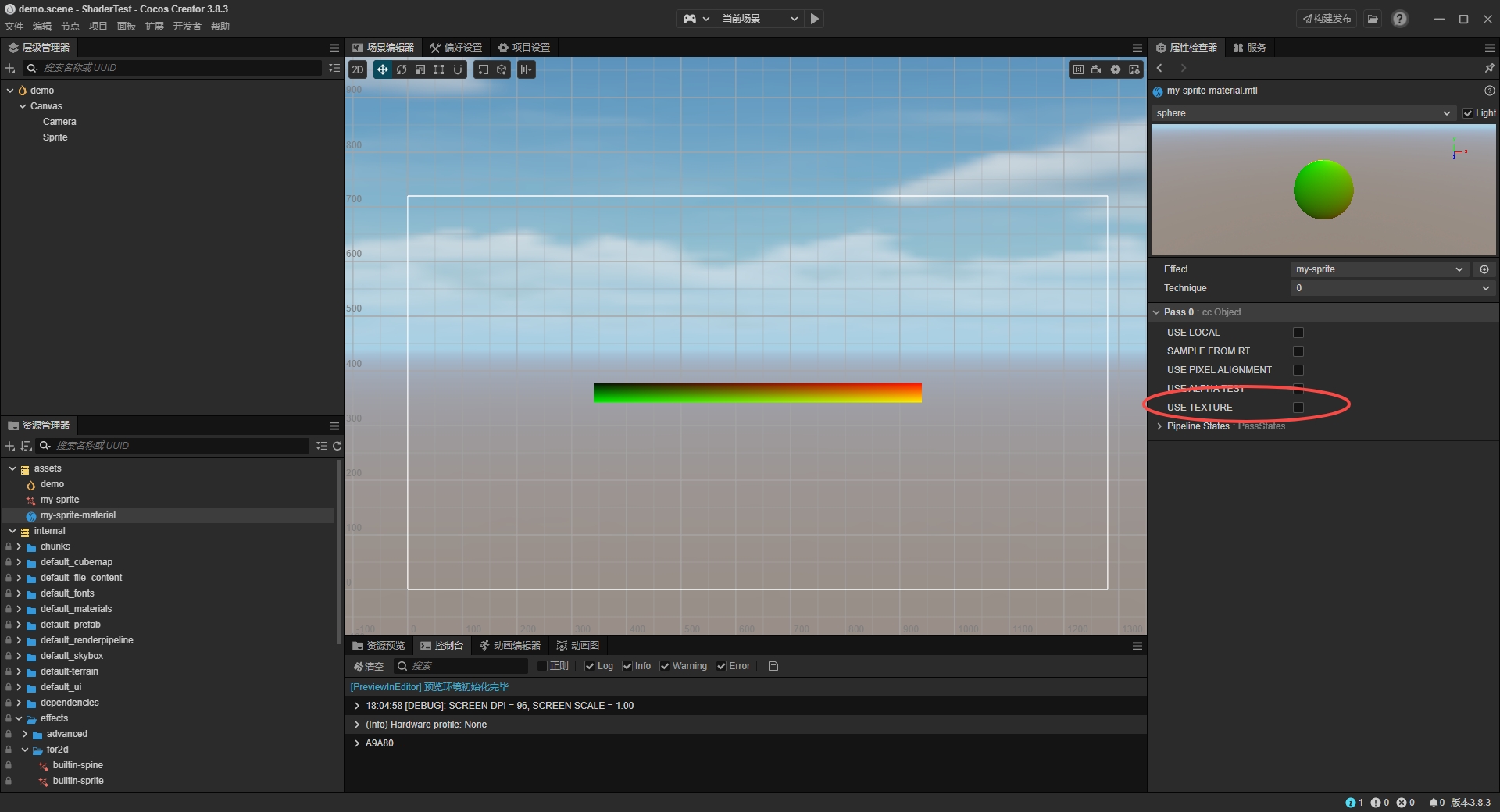 如图一个简单的sprite自定义材质在编辑器预览和浏览器预览不显示 模拟器预览没问题