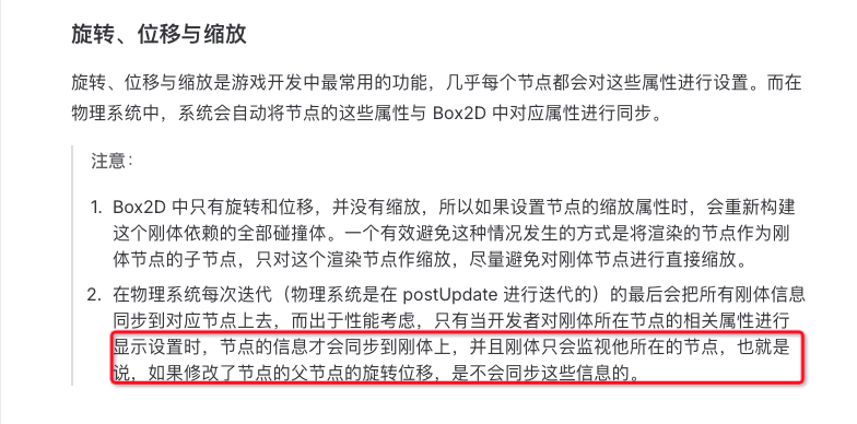 一个父节点下面挂了一个子节点,子节点挂了一个BoxCollider2d组件,当改变父节点位置, 子节点也改变了位置,但是子节点上面的boxCollider碰撞体依然在原来的位置。