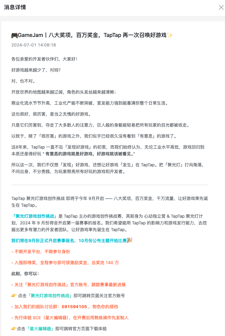 TapTap完整公告:🎮GameJam丨八大奖项,百万奖金,TapTap 再一次召唤好游戏✨ - 聚光灯游戏创作挑战综合讨论 - TapTap 聚光灯游戏创作挑战论坛