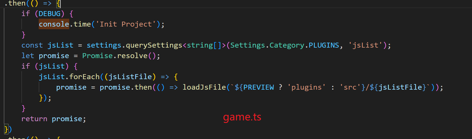 在game.ts中去加载的插件脚本,所以是加载完成后才去启动游戏的。