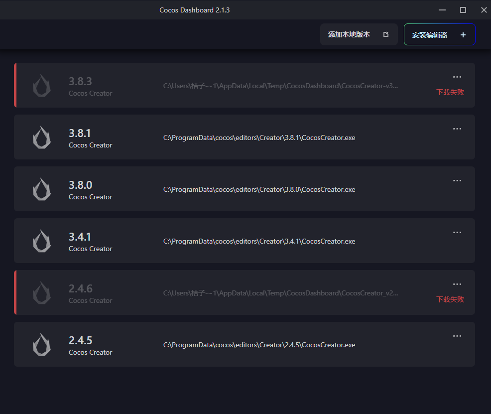 安装路径:D:\Program Files (x86)\CocosDashboard