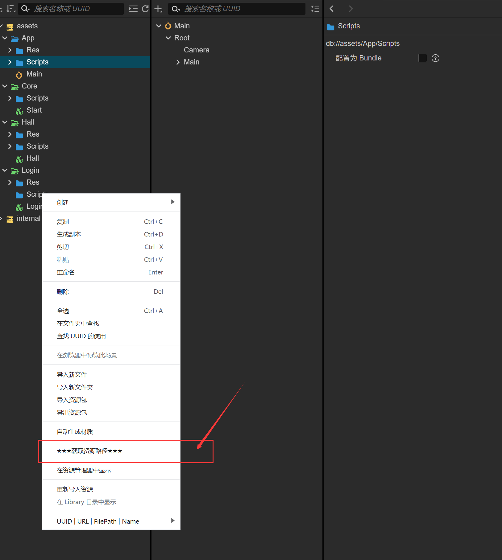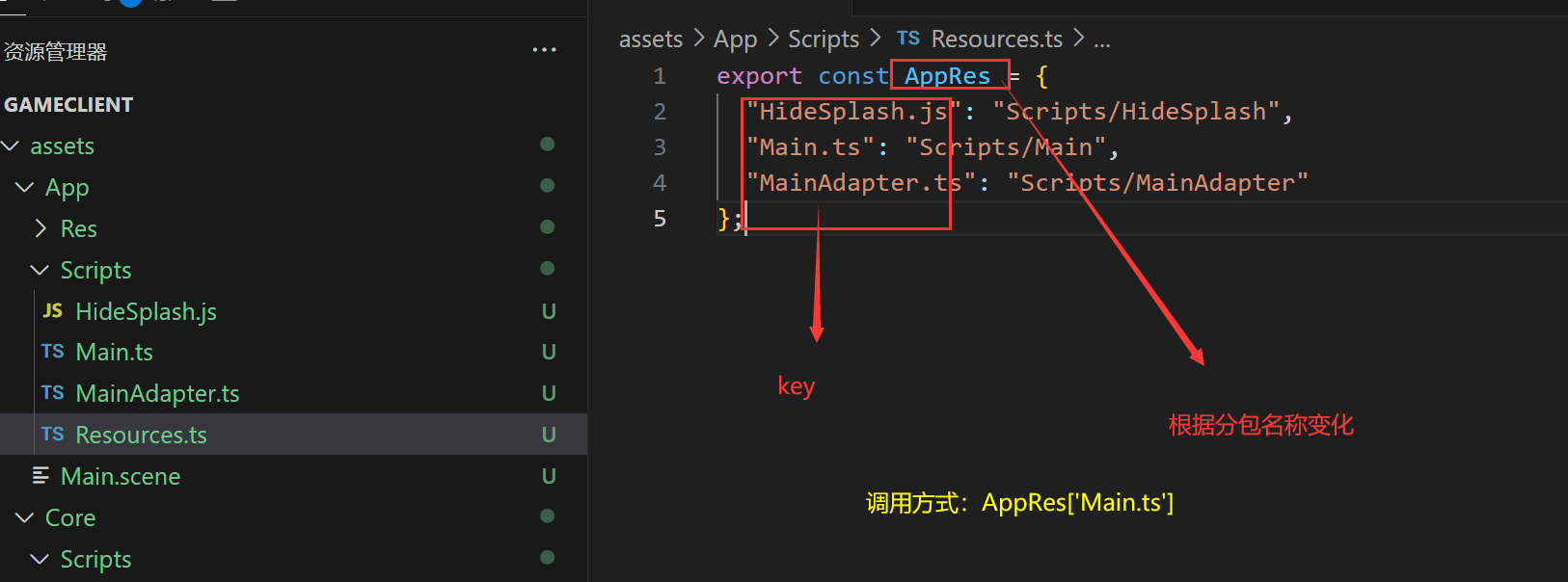 所以资源路径文件【Resources.ts】自动生成于每个分包下的Scripts目录下