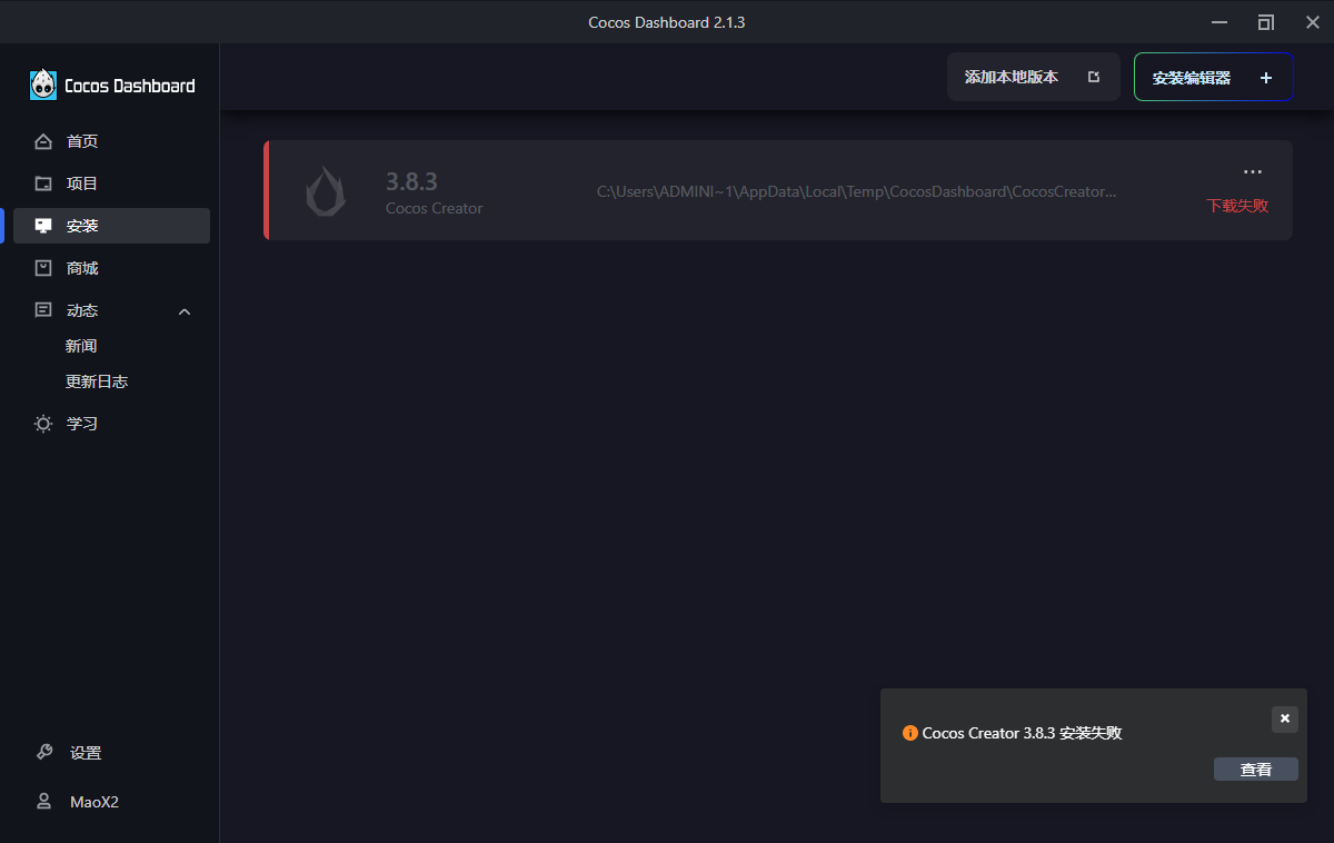 电脑安装cocos bashboard以后编辑器死活装不上,救救孩子吧