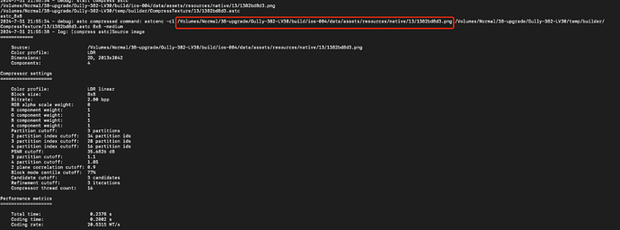问题出现在自动图集,构建完安卓后,再次构建安卓,不会再有压缩astc的过程,但这时候如果构建ios,则自动图集的内容会再次压缩,如图(先构建一个原生平台,此平台反复构建都不会出现问题,但如果换了平台,会导致再次压缩纹理)