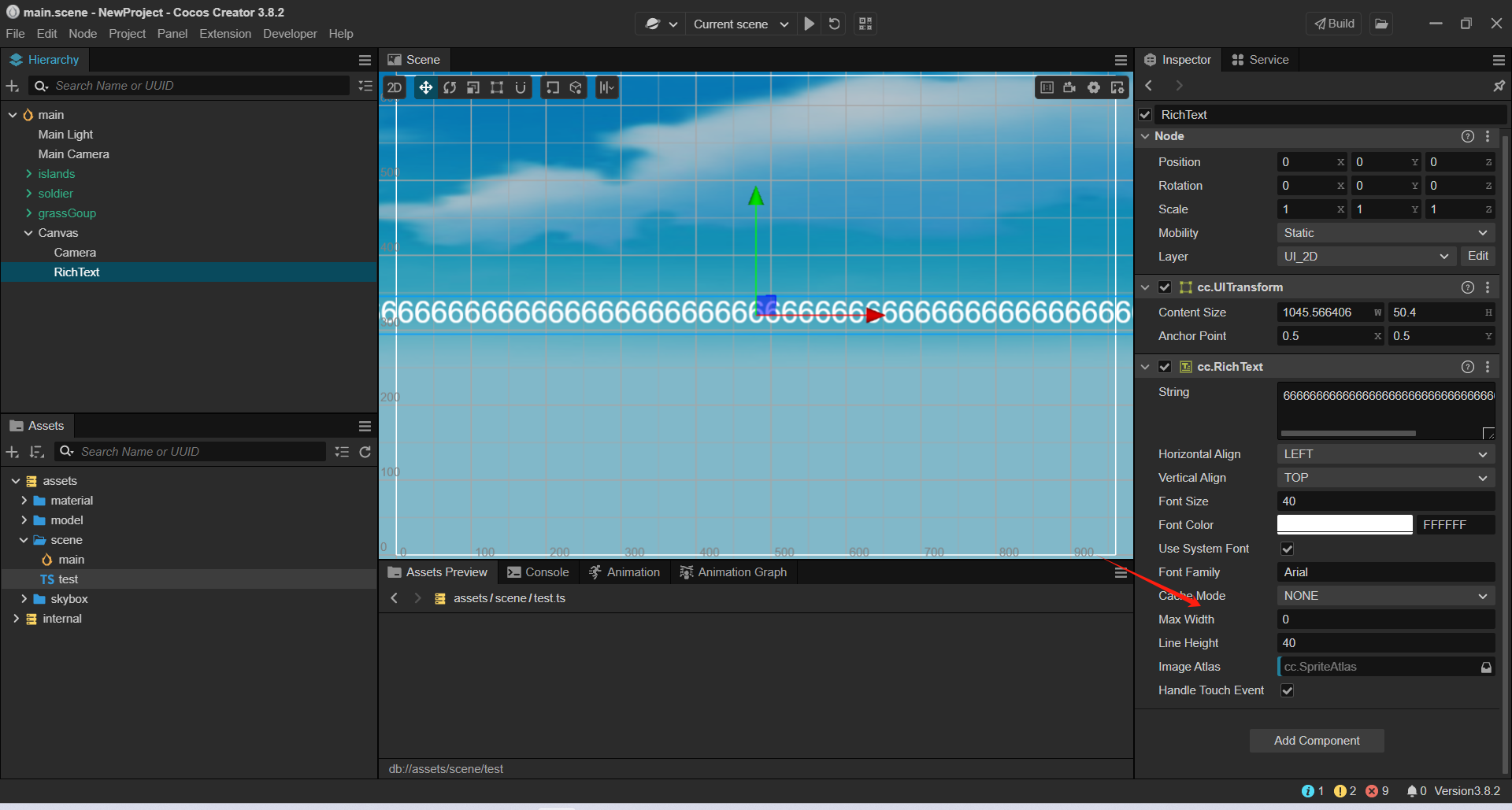 这个不算bug,单个文本的宽高只能是小于2048,因为cocos的文本实际上是生成的图片,宽高超过2048的图片很多设备都不支持的