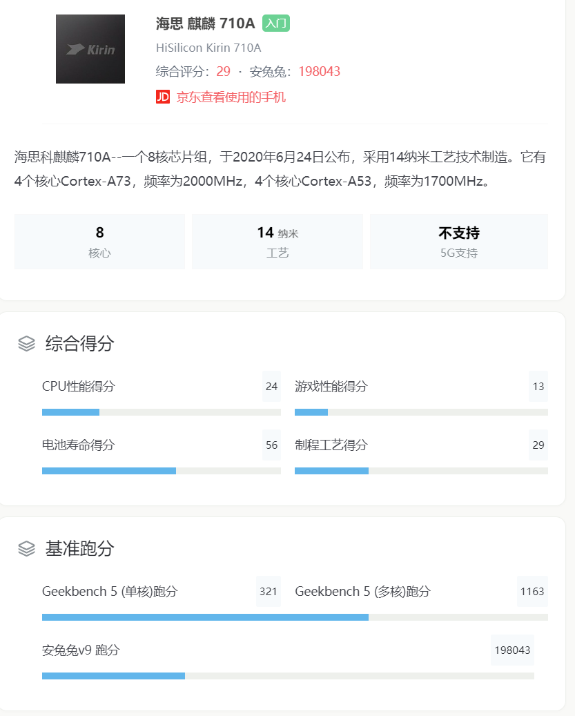 华为畅玩20,查了下CPU型号 ,麒麟710A