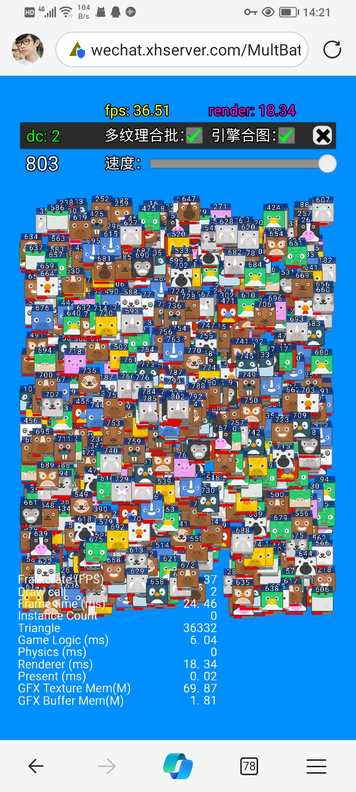 毕竟是3.6w个三角形,引擎合批每帧都在算world。