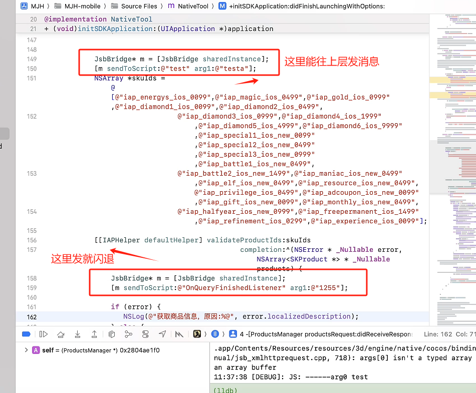 可以用 engine->getScheduler()->performFunctionInCocosThread(= { … }); 包装一下发到主线程中执行。或者你用 oc 的接口把这个 IAP 的回调抛到主线程中。