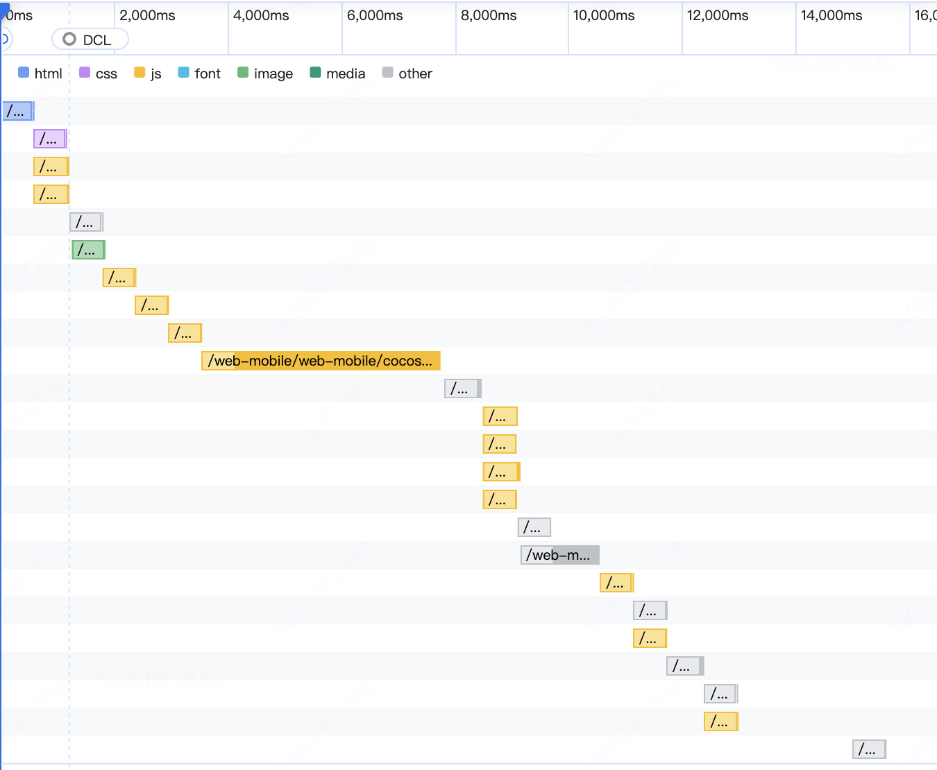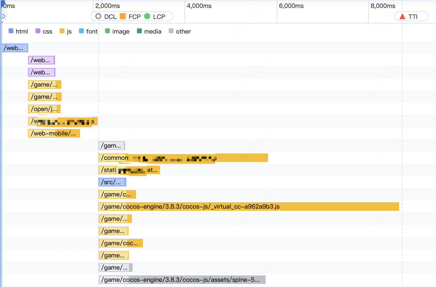 因为creator启动的时候线性下载太多的js文件,还有json文件,还有spine的wsam文件,导致进首屏的时间太久了。