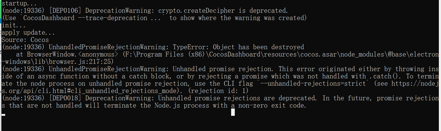 CocosDashboard启动就会刷更新读取配置什么的,然后就消失了~