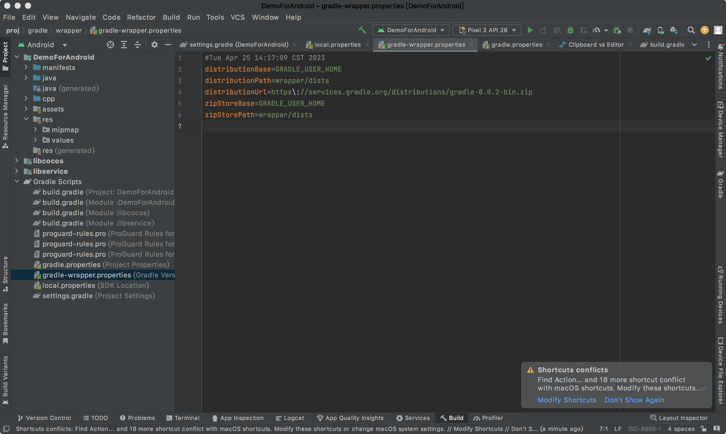 com.android.ide.common.process.ProcessException: ninja: Entering directory `/Users/chenzongtian/CocosProjects/DemoForAndroid/build/android/proj/build/RelWithDebInfo/2e733b39/arm64-v8a’