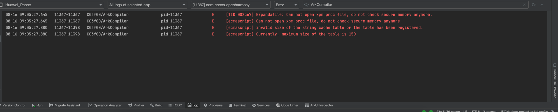 重现方式:正常按照文档上打的,只不过文档上sdk是9,我换成了"compatibleSdkVersion": “4.0.0(10)”,当前状况是能打出app来,但是在模拟器上是黑屏的,但是有声音,也能点按钮,输出也没有报错,目前因为没有测试机只有模拟器,不知道真机是不是也这样。 ArkCompiler输出有几行报错,但是看不懂