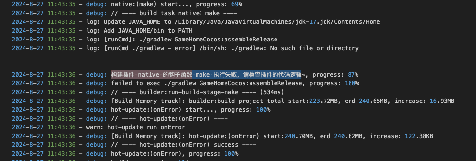 构建插件 native 的钩子函数 make 执行失败,请检查插件的代码逻辑。