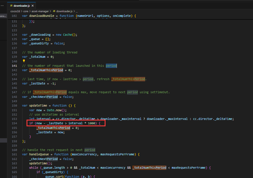 游戏内切后台修改系统时间,切回前台后,加载全部阻塞。由于这里时间判断一直位负,导致_totalNumThisPeriod 无法重置。
