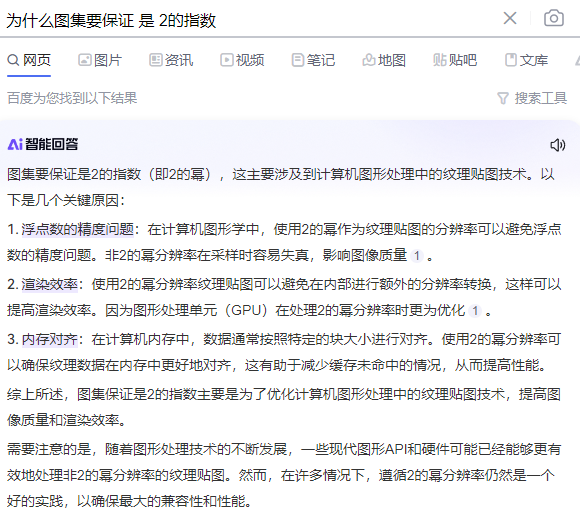 - 硬件特性 :不同的 GPU 对于处理不同尺寸的纹理效率各异。某些硬件可能在处理较大纹理时表现更好。