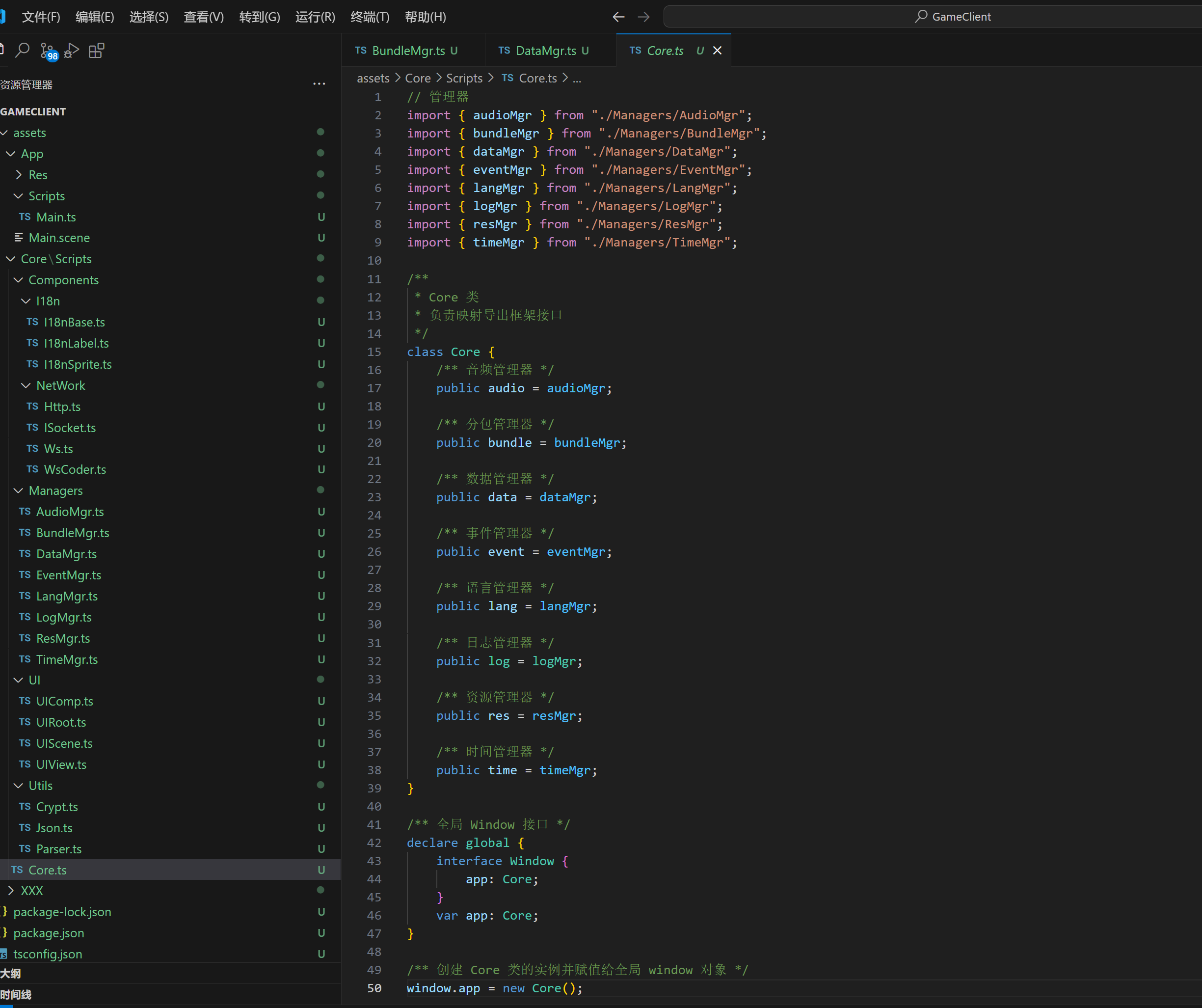 二、记得映射到:assets\Core\Scripts\Core.ts