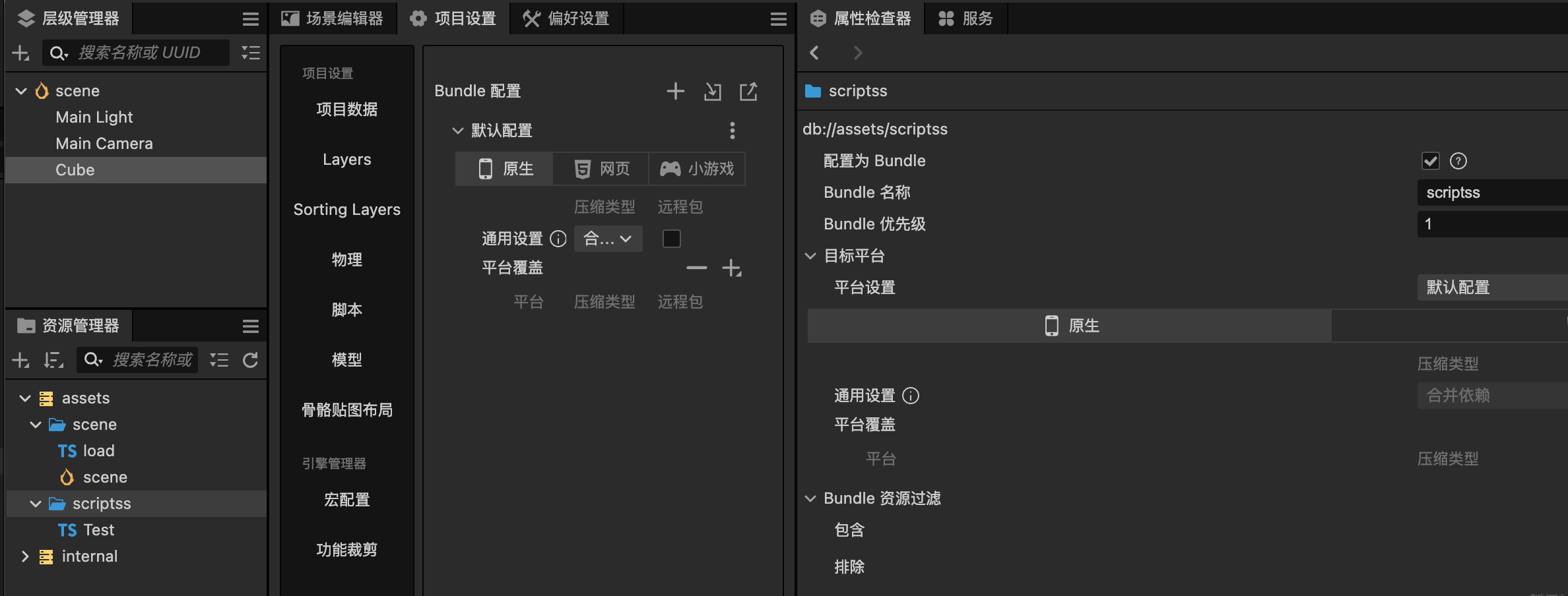 我将scriptss文件夹设置为Bundle之后,打包构建,就报错了。如果取消就没没有问题。