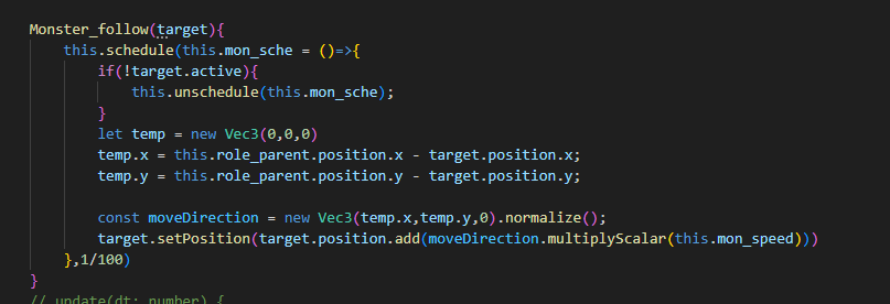 现在想实现割草游戏的怪物追踪问题,看了一些帖子,有些是设的线速度,有一些直接看不懂,但是目前还没尝试出来,有没有大佬能清晰的讲一下怎么实现最好,怪物不会生成太多,最多100吧,后面可能还要研究攻击的问题,不过现在要先解决追踪问题,麻烦各位大佬们闲暇之余看一看,谢谢。
