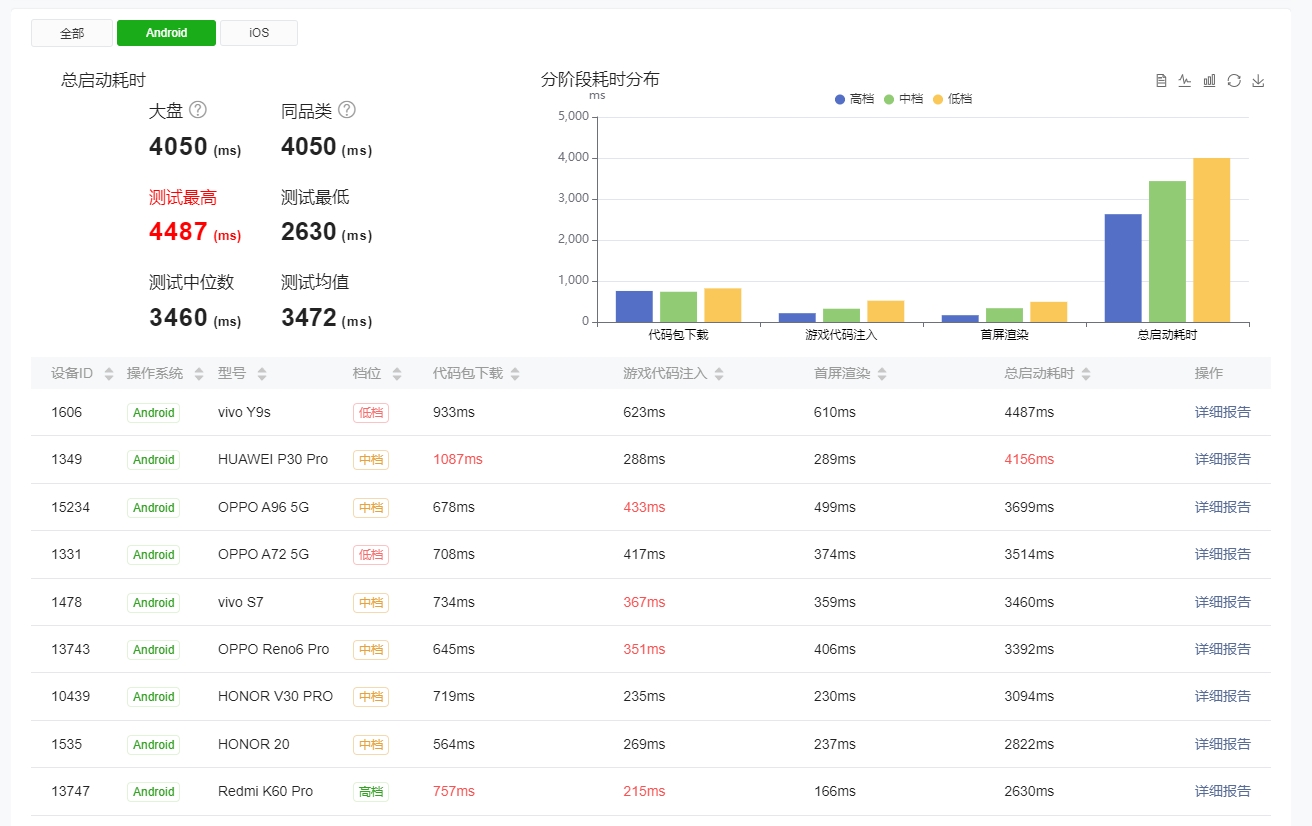 5.测试:在微信后台,版本管理,体验版后面的提交审核按钮后面的向下箭头里有个云测试,然后选择随机50台开启测试。有结果后,里面启动耗时有特别长的,比如十多秒的。或者启动失败的。记住这个机型。然后再自选设备,不去选刚刚异常的机型,可以选择10个。再次测试。选择的时候 一般是1:高配 6个中配 3个低配,这种组合是比较符合真实的用户机型的。