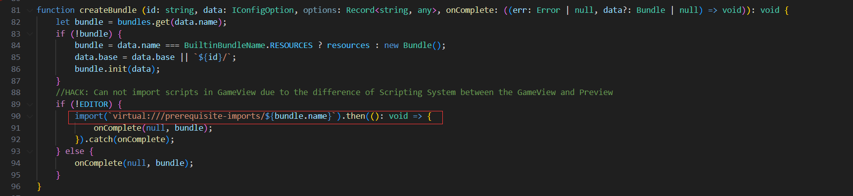@浓墨无痕 大概理解了,和你之前说的类似, import( virtual:///prerequisite-imports/${bundle.name} )执行之前,加载了assets/internal/index.js,这个脚本中利用 SystemJs的System.register注册了这个模块