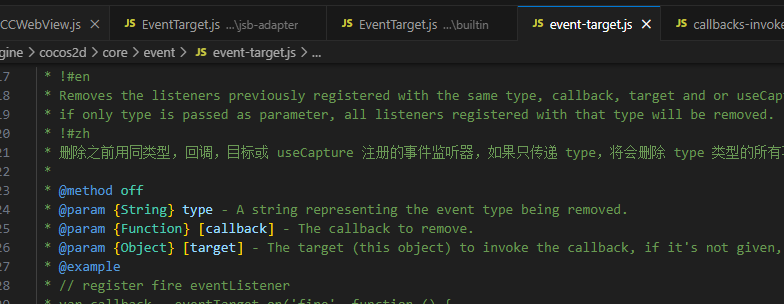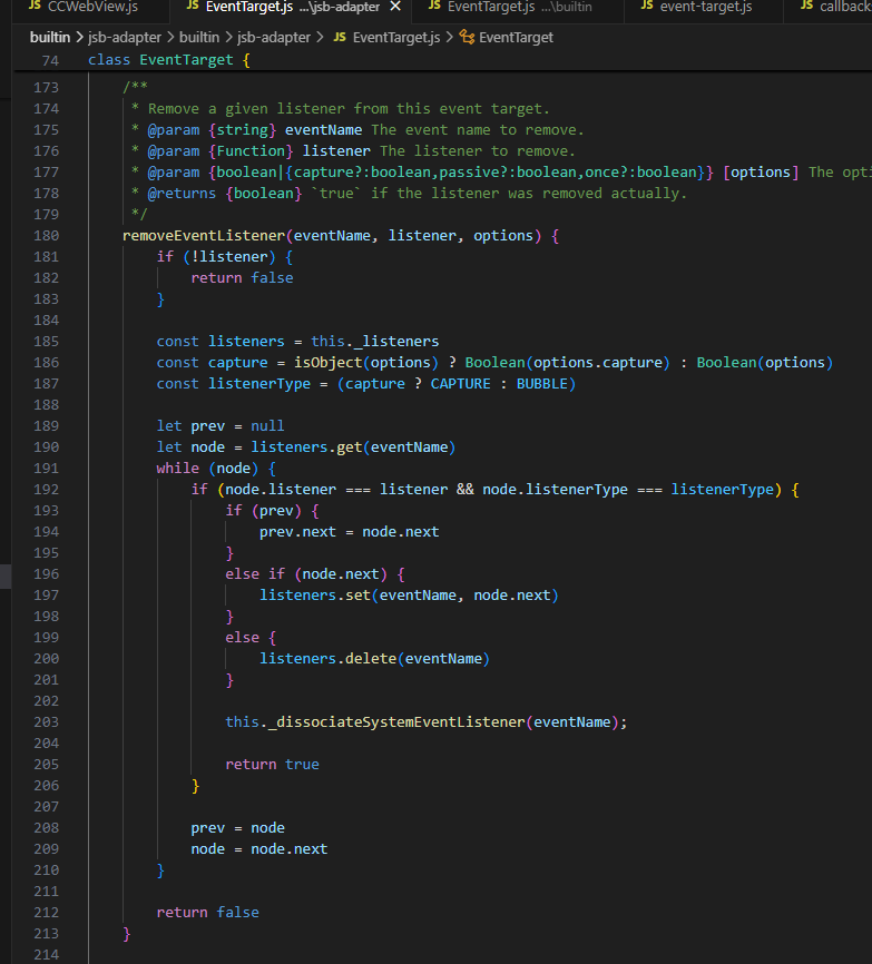 jsb-adapter目录下的EventTarget使用了链表逻辑来实现事件的添加删除