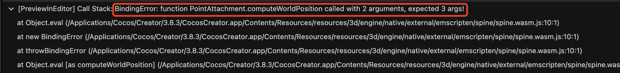 BindingError: function PointAttachment.computeWorldPosition called with 2 arguments, expected 3 args!