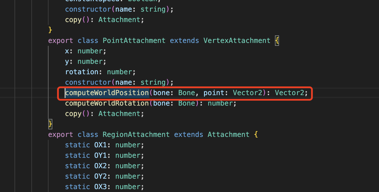 在使用spine的时候,获取到PointAttachment实例调用computeWorldPosition方法,目前computeWorldPosition的定义是: