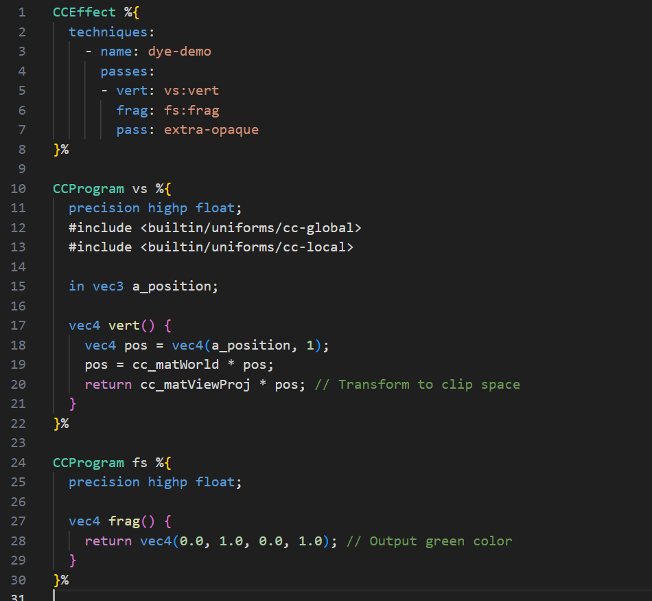 Effect 中的 pass,其 pass 字段赋值为"extra-opaque",和 ts 代码中 addQueue(…, ‘extra-opaque’) 最后那个参数相对应,意图使用名为"extra-opaque"的pass绘制一遍模型。但是,运行时会出现如下问题: