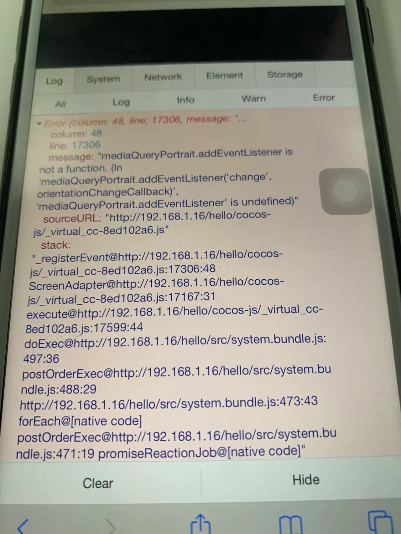 打个web-mobile包,加上vConsole,看看报错