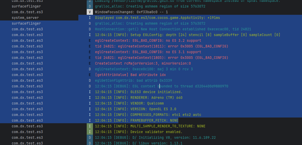 2024-10-15 12:04:15.417 24792-24821 EGL_adreno com.dx.test.es3 E CreateContext rcMajorVersion:3, minorVersion:0