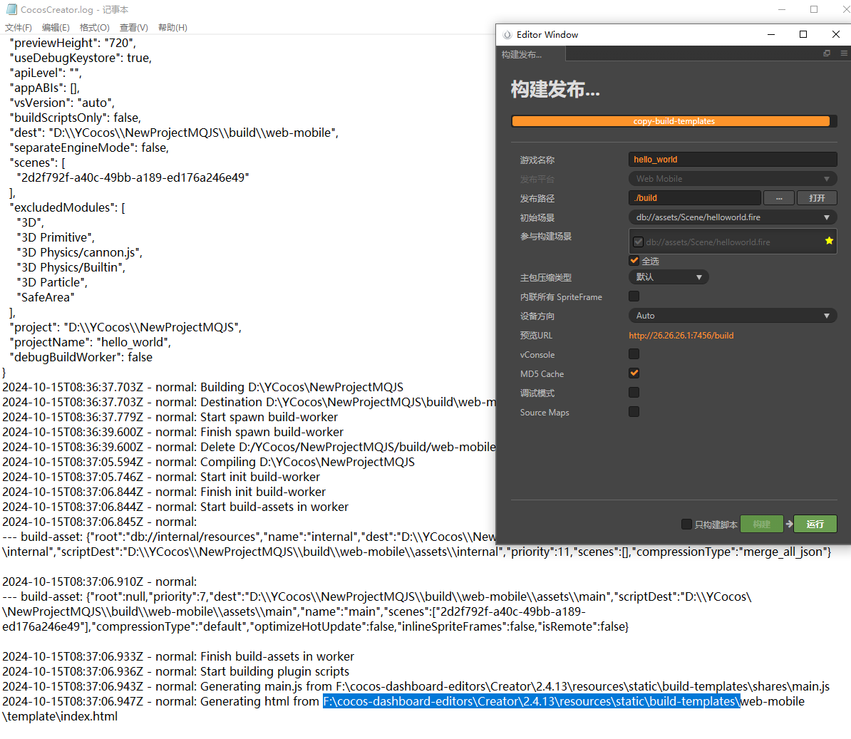 “dest”: “D:\YCocos\NewProjectMQJS\build\web-mobile”,