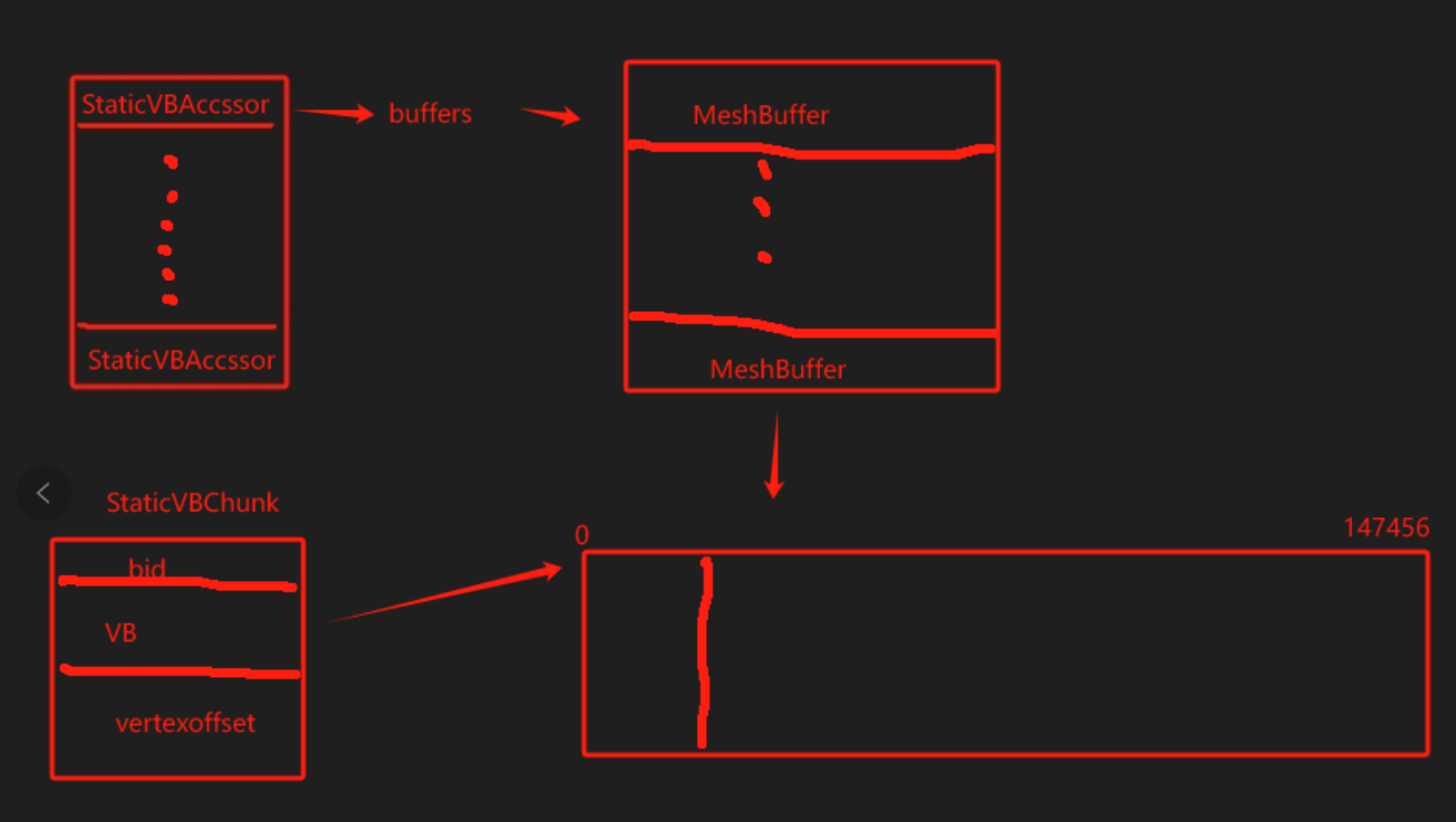 Accssor相当于大地主,有很多块田(MeshBuffer),然后StaticVBchunk是用了田的某一部分(口?口?口?口)