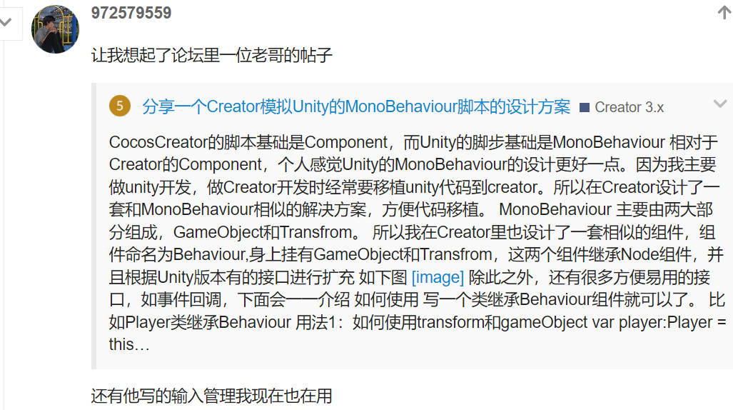 哈哈哈,没想到我模仿Unity写的组件还这么受欢迎啊。这也是cocos的代码写法有点麻烦,所以模仿untiy的MonoBehaviour写了一个Creator版的。代码简化了很多。