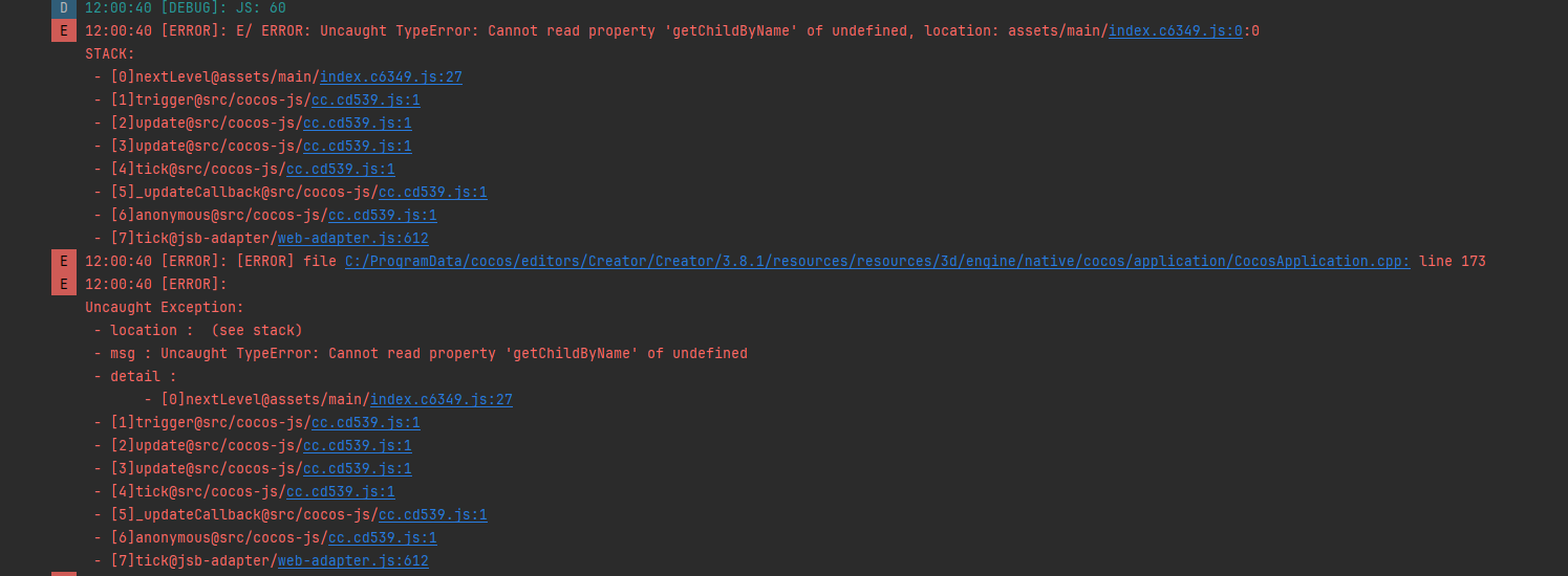 就是别人发我的项目我Android构建发布后生成apk后进行白包测试 发现就是通关完后进入到下一关 会找不到属性 一下是报错信息