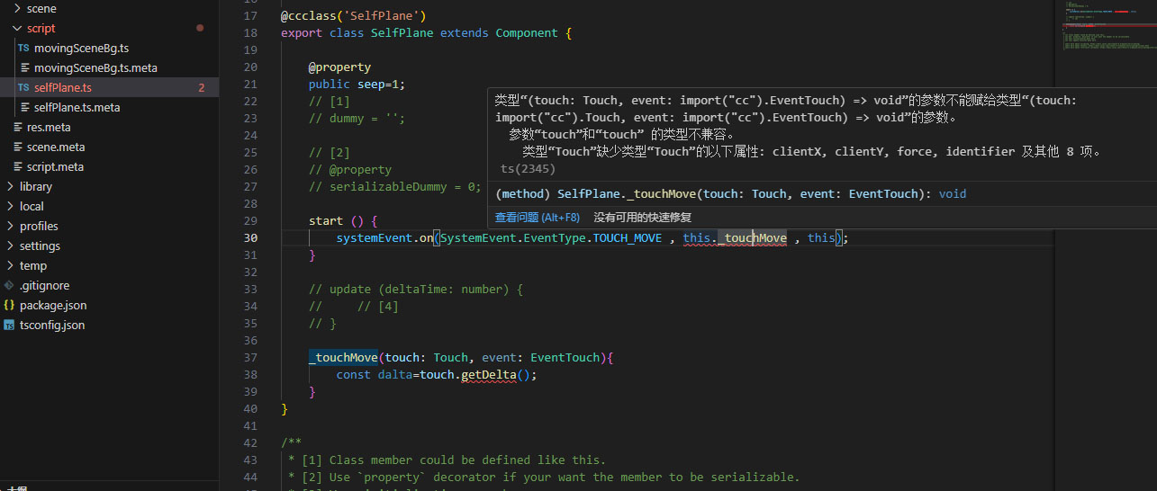 说明你的Touch类型不是cc命名空间下的,你拉到顶部看看类型导入