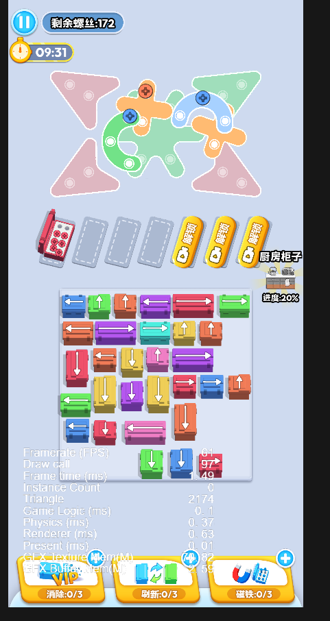 我的打螺丝项目用到了Box2D物理系统,功能很简单就是用Boxcollider2D封好板子形状,留出螺丝孔的位置,然后用螺丝的碰撞卡住板子,不同的层之间通过设置Group做到不相互影响
